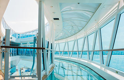 • Şimdiye kadar en büyük üst güverte havuzu ve deniz seviyesinin 35 metre üstünde cam köprü ve geliştirilmiş dev sinema ekranı.