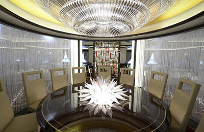 Bunlar geminin sosyal merkezi olarak hizmet veren çok katlı atrium arasında; benzersiz deniz üzerinde yürüme hissi veren, geminin kenarından dışarı 8 metre (28 ayak) uzanan bir cam zemin geçit; özel Şefin Masası Lumiere - Bir ışık perdesi yanı sıra Çinli yolcular için geliştirilen yeni mekânlar ve özellikler. Özel yemek deneyimi.