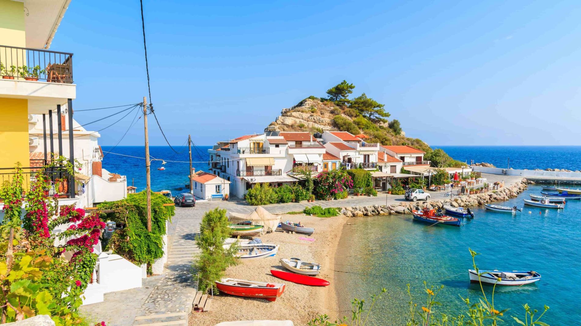 Bembeyaz evleri ile tipik Akdeniz mimarisini ve kültürünü yansıtan Patmos, bir yeryüzü cenneti. Feribotlar, yatlar ve gezi tekneleri genellikle, adanın merkez ve liman şehri olan Skala'da demirliyor. Çok sık ve lüks bir havaya sahip olan şehirde çok sayıda hediyelik eşya dükkânı ve butik var. Limandan adanın büyük kumsallarına her gün kayık ve küçük tekne turları düzenleniyor.